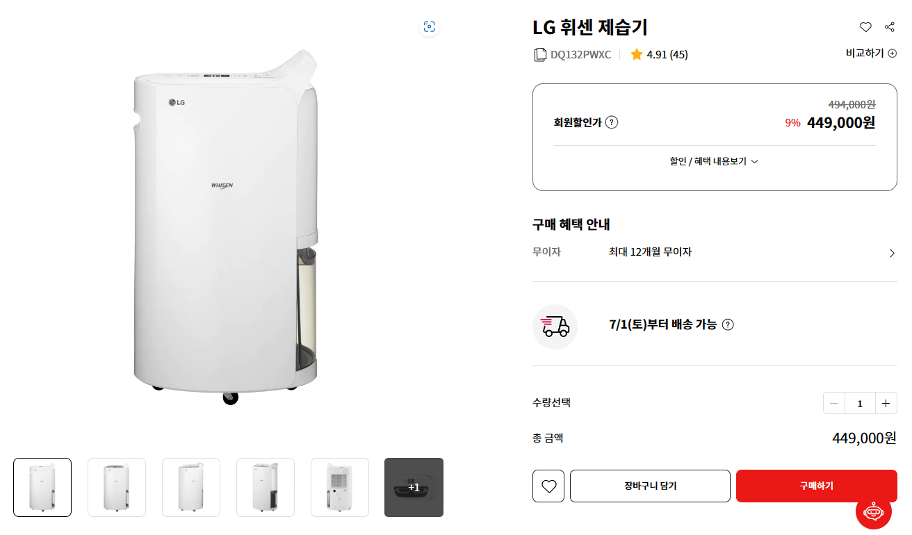 LG전자 휘센 DQ132PWXC 장마철 가성비 제습기 알아보기